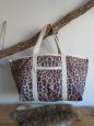 schoudertas/strandtas XXL tas van canvas en leer