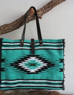 schoudertas/strandtas XXL tas van canvas en leer Kleur: turquoise