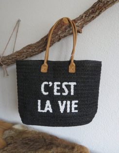 Kleur: zwart De tas sluit met een rits. Met de tekst: C'est la
